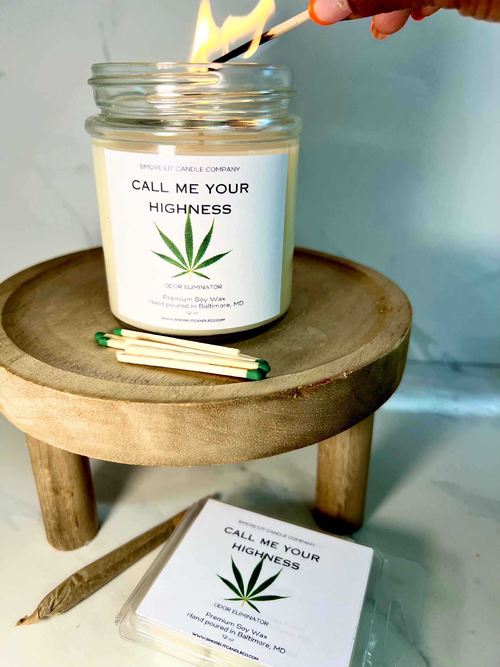 Our 420 candle is an odor eliminator. Light this when that’s lit!